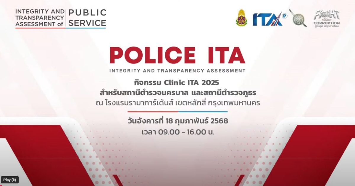 Clinic POLICE ITA 2025 18 กุมภาพันธ์ 2568 โดย adm_samchuk adm_samchuk / ข่าวประชาสัมพันธ์ กิจกรรม Clinic ITA 2025 (สถานตำรวจ) ในวันอังคารที่ 18 กุมภาพันธ์ 2568 เวลา 08.00-16.00 น.สภ.สามชุก มีพ.ต.ท.พชรพง ปิ่นทอง สว.อก.สภ.สามชุกจ.ส.ต.นิติณัฐ มาเมืองบน ผบ.หมู่ ป.สภ.สามชุกเข้าร่วมการประชุมทางไกลผ่านระบบซูม