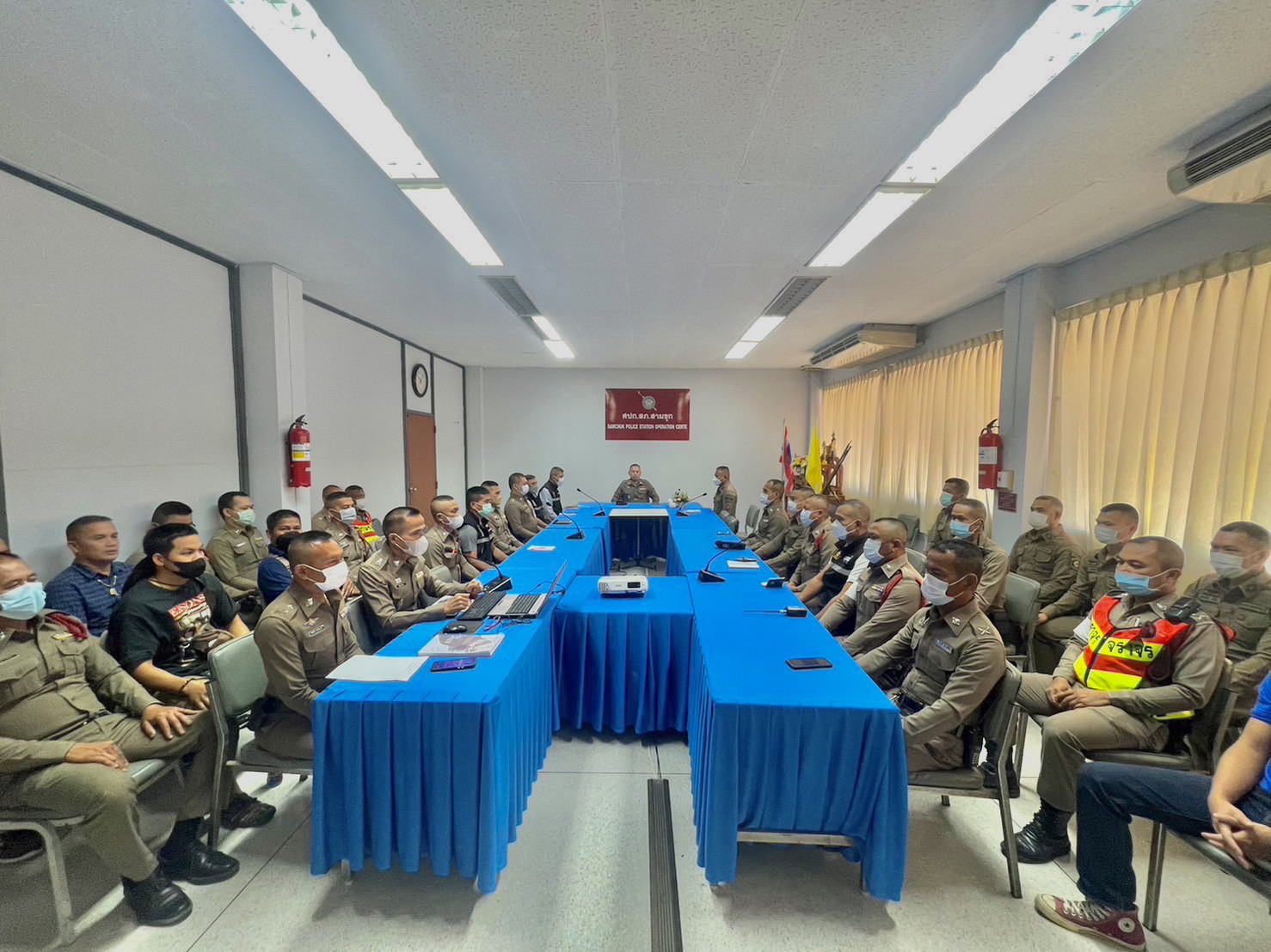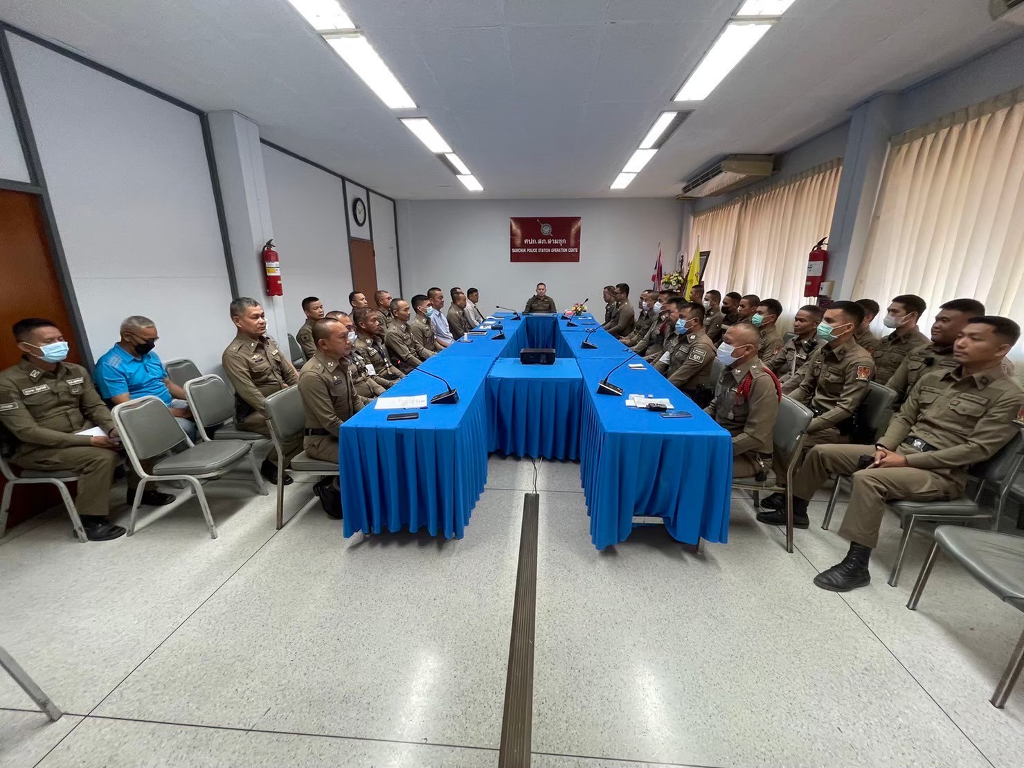 ผู้กำกับการสถานีตำรวจภูธรสามชุก ชี้แจงและให้ข้อมูลเกี่ยวกับ การประเมิน ITA แก่เจ้าหน้าที่ตำรวจในสถานตำรวจภูธรสามชุก